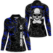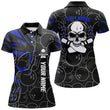 Blaue Tarnmuster Bowling-Polo-Shirts für Damen, individuell gestaltetes Team Skull Bowling, Damen-Team-Bowlingtrikots Q6421