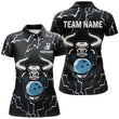 Bowling Bull Thunder Lightning Schwarzes Bowling-Polo-Shirt für Damen - Personalisiertes Bowling-Team-Liga-Trikot Q6498