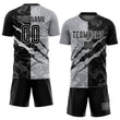 Benutzerdefinierter Graffiti-Muster Schwarz-Grau Kratz-Sublimations-Fußballtrikot L199