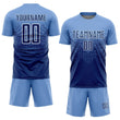 Maßgeschneiderte hellblaue Navy-Weiße Sublimations-Fußballtrikot D989