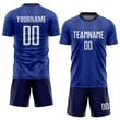 Maßgeschneiderte Royal Weiß-Navy Sublimationsfußballtrikot Y546