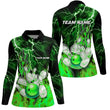 Damen Bowling Polo Shirt individuell gestaltet mit grünem Blitz und Donner Bowling Team Trikot, Geschenk für Team Bowlers Q7065