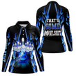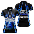 Damen Bowling Polo Shirt - Personalisiertes Blau Flammen Design für Bowlingball, Pins, Team und Liga - Q6284
