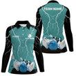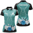 Damen Bowling Polo Shirt | Personalisiertes Bowling Strike Lightning Storm Thunder Team Liga Trikot | Türkis Q6342