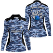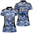 Damen Bowling Polo Shirt | Personalisiertes Bowlingball und Pins Blau Camo | Bowling Team Trikot für Frauen Q6361