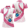 Damen Bowling Polo Shirt - Personalisiertes Pink Ribbon Bowlingkugel-Pins Brustkrebs-Bewusstseins-Bowlingtrikot Q6338