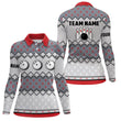 Damen Bowling Polo Shirts - Personalisiertes Bowling Trikot mit hässlichem Weihnachtsmuster - Bowlingkugel Pins Team - Q6727