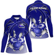 Damen Bowling Polo Shirts - Personalisiertes Bowlingkugel und Pins Team Liga Trikot, Geschenke für Bowler | Blau Q7073