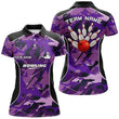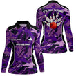 Frauen Bowling Polo Shirts - Individuelles Bowlingball und Pins Lila Camo Bowling Team Trikot für Frauen Q6488