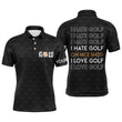 Personalisiertes Golf-Shirt - Witzige Herren Golf Poloshirts Ich hasse Golf, schöner Schlag Ich liebe Golf, individuelles schwarzes Muster Golf Poloshirts N5436