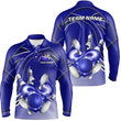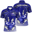 Herren Bowling Polo Shirt individuell gestaltetes Bowlingkugel- und Pins-Team-Liga-Trikot, Geschenke für Bowler | Blau Q7073