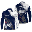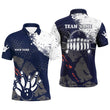 Herren Polo Bowling Shirt in Navy und Weiß | Retro Bowlingkugeln und Bowlingpins | Personalisierbar | Liga-Trikot Q6313