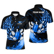Herren Polo Bowling Shirt - Individuell gestaltet mit blauen Flammen - Bowlingkugel und Pins - Team Liga Bowler Trikots Q6977