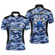 Herren Polo Bowling Shirt - Individuelles Bowlingball und Pins Blau Camo Bowling Team Trikot für Männer Q6361