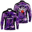 Herren Polo Bowling Shirt - Individuelles Bowlingball und Pins Lila Camo Bowling Team Trikot für Männer Q6488
