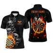 Men's Darts Skull Flames Polo Shirt, Customizable Fire Darts Shirt for Men, Darts Jersey R847