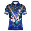 Individually customizable men's bowling polo shirt with name, 3D bowling team shirt for men | Blue