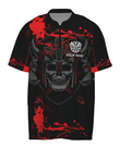 Individuelles rotes Dart-Shirt mit Krieger-Schädel, 1/4 Zip Dart-Trikot für Herren, gruseliges Dart-Trikot G148