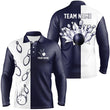 Navy Blue und Weiß Retro Vintage Bowling Polo Shirts für Herren - Personalisierte Bowling Team Trikots Q6480