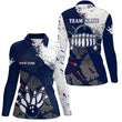 Personalisierte Bowling-Shirts für Damen in Navy und Weiß | Retro Bowlingkugeln und Bowling-Pins | Individuelle Bowling-Team-Liga Trikots Q6313