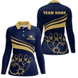Personalisierte Polo-Bowling-Shirts für Damen, individuelle goldene Damen-Bowling-Shirts, Team-Bowl-Jersey | Marineblau Q6707