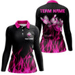 Personalized Women's Bowling Polo Shirt with Black and Pink Flames, Bowling Jerseys, Personalized Bowling Team Shirts