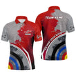 Bogenschießen Poloshirt Herren Damen Personalisiert - Spruch: Zielen Schießen Fluchen Wiederholen - Auch als 3D Bogenschießen Shirt - Rot Grau V0706