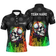 Individuelle Herren Golf Poloshirts mit personalisiertem Regenbogenflammen-Schädel Feuer Schwarz Golfbekleidung für Männer N7125