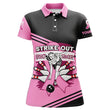 Rosa Damen Bowling Polo Shirt - Personalisiertes Strike Out Brustkrebs Bowling Team Trikot, Bowling Geschenk Q6382