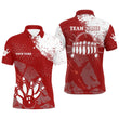 Rote und weiße Herren Polo Bowling Shirts - Individuell gestaltete Retro Bowlingkugel Pins - Bowling Team Liga Trikots Q6500