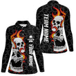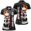 Schwarze Camo Bowling Polo Shirts für Damen - Individuelle Flammen-Schädel Bowling Team Liga Trikots Q6495