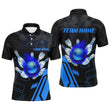 Schwarze Flammen Bowlingkugel und Pins Trikots | Personalisierte Team Liga Bowling Polo Shirts für Herren | Blau Q6557