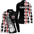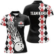 Schwarze und rote Argyle-Muster Bowling Fire Polo Shirts für Damen - Personalisierte Bowling Team Liga Trikots Q6912