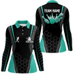 Schwarzes Damen Polo Bowling Shirt mit individuellem Namen | Damen Bowlers Jersey, Team Bowling Outfits | Türkis Q6505