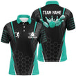 Schwarzes Herren Bowling Polo Shirt mit individuellem Namen | Männer Bowlers Jersey, Team Bowling Outfits | Türkis Q6505
