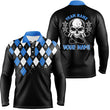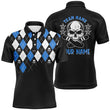 Schwarzes und blaues Argyle-Muster Bowling Skull individuelle Bowling-Polo-Shirts für Herren, Bowling Trikots Q6917