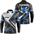 Schwarzes und weißes Bowling-Polo-Shirt für Herren | Personalisiertes Bowlingkugel-Pins-Team Bowler Trikot | Blau Q6447