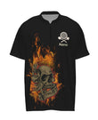 Individuell anpassbares Herren Dart-Quarter-Zip-Shirt 'In Dart We Trust' mit Flammen-Schädel-Motiv, verrücktes Feuer-Darts-Trikot KH9690