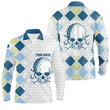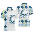 Personalisiertes Golf-Shirt - Herren Golf Polo Shirt mit individuellem blauem Argyle-Muster - Weißer Golfball-Schädel N7203