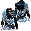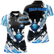 Blau Damen Polo Bowling Shirt - Personalisierbar mit individuellen Bowlingkugel-Anstecknadeln - Schwarze Bowling Team Liga Trikots Q6461