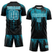 Maßgeschneiderte Teal Schwarz-Weiß Sublimations-Fußballtrikot I144