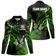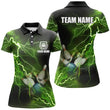 Damen Bowling Polo Shirt - Personalisiertes grünes Blitz- und Donner-Bowling-Teamtrikot, Geschenk für Team-Bowler Q6146