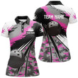 Damen Bowling Polo Shirt Personalisiertes Schwarzes Ball Pink Camo Bowling Team Trikot, Geschenk für Mädchen Bowlers Q5424