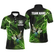 Herren Polo Bowling Shirt - Individuell gestaltetes grünes Blitz- und Donner-Bowling-Teamtrikot, Geschenk für Bowling-Teams Q6146