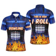 Personalisierte Bowling-Polo-Shirts für Herren mit blauer Flammen-Optik - Das ist wie ich rolle! Team-Bowlingtrikots Q5634