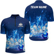 Personalisierte Bowling-Shirts für Herren - Blaue Flammen Bowling Team Trikot - Bowling Liga Outfits - Geschenke für Bowler - P5493