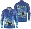 Personalisiertes Herren Bowling Polo Shirt blau mit Flammen Bowlingkugel und Pins, Mein Trinkteam Bowling Problem Q4505