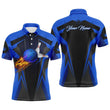 Personalisiertes Herren Bowling Polo Shirt mit Flammen Bowlingkugel und Pins, Bowling Polo für Herren | Blau Q4527