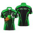 Personalisiertes Herren Bowling Polo Shirt mit Flammen Bowlingkugel und Pins, Bowling Polo für Männer | Grün Q4503