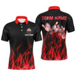 Personalisiertes Herren Polo Bowling Shirt - Rotes Flammen Bowling Ball und Pins - Bowling Trikots für Herren Bowler Q5488